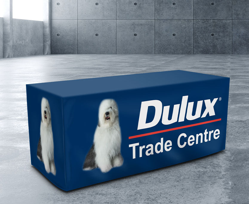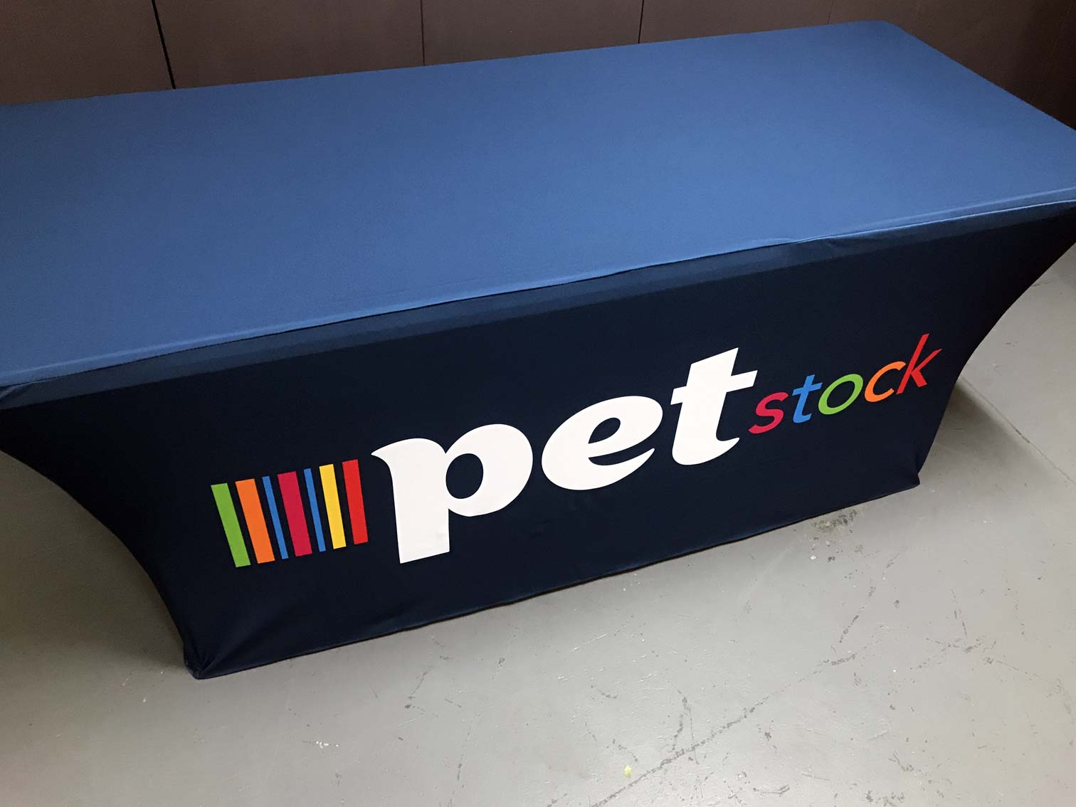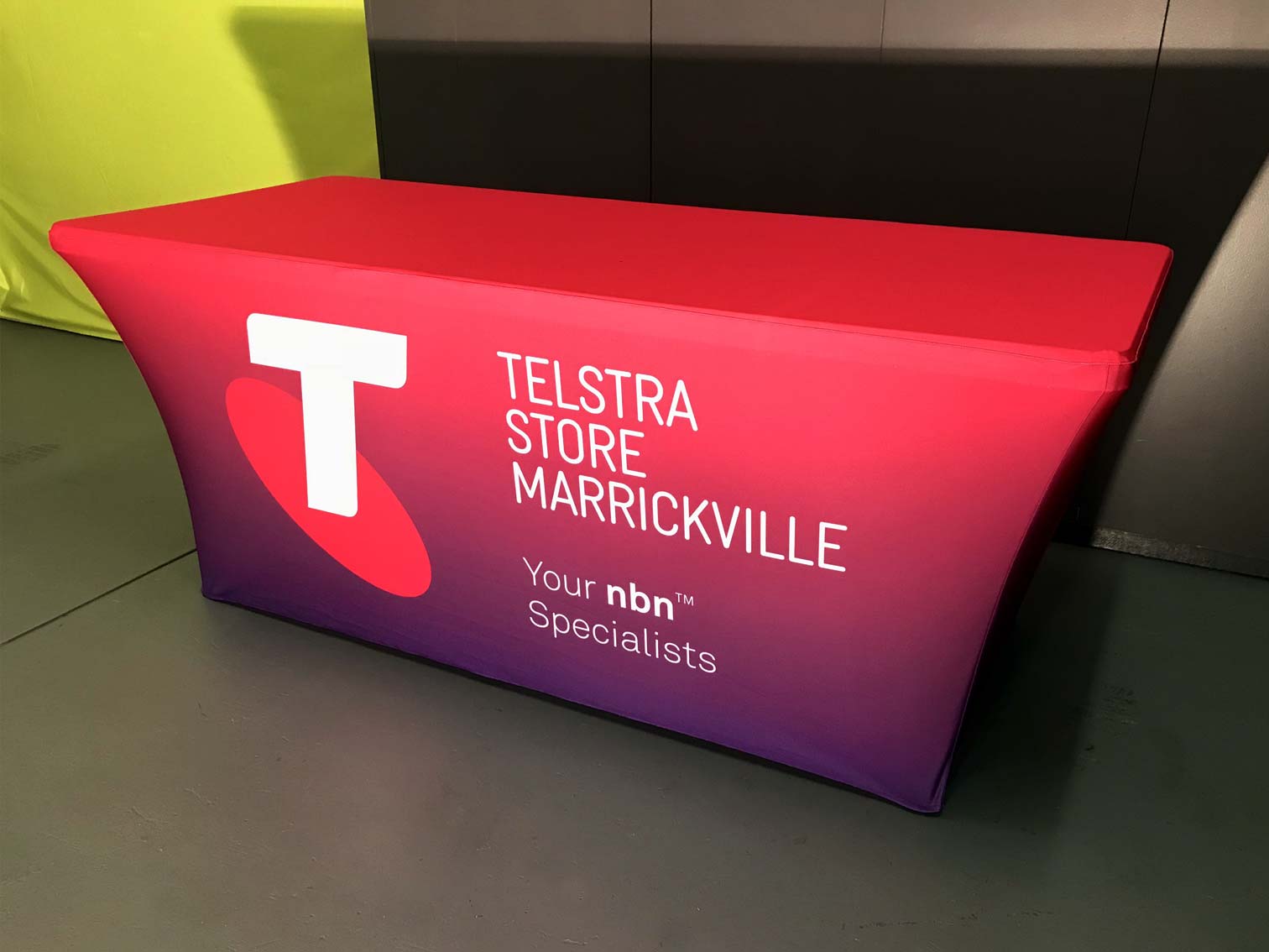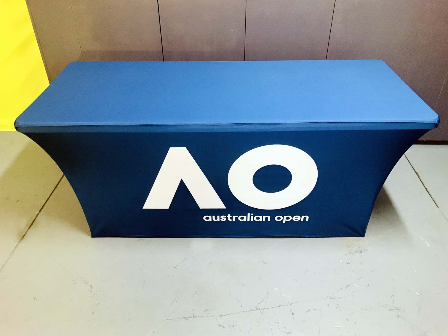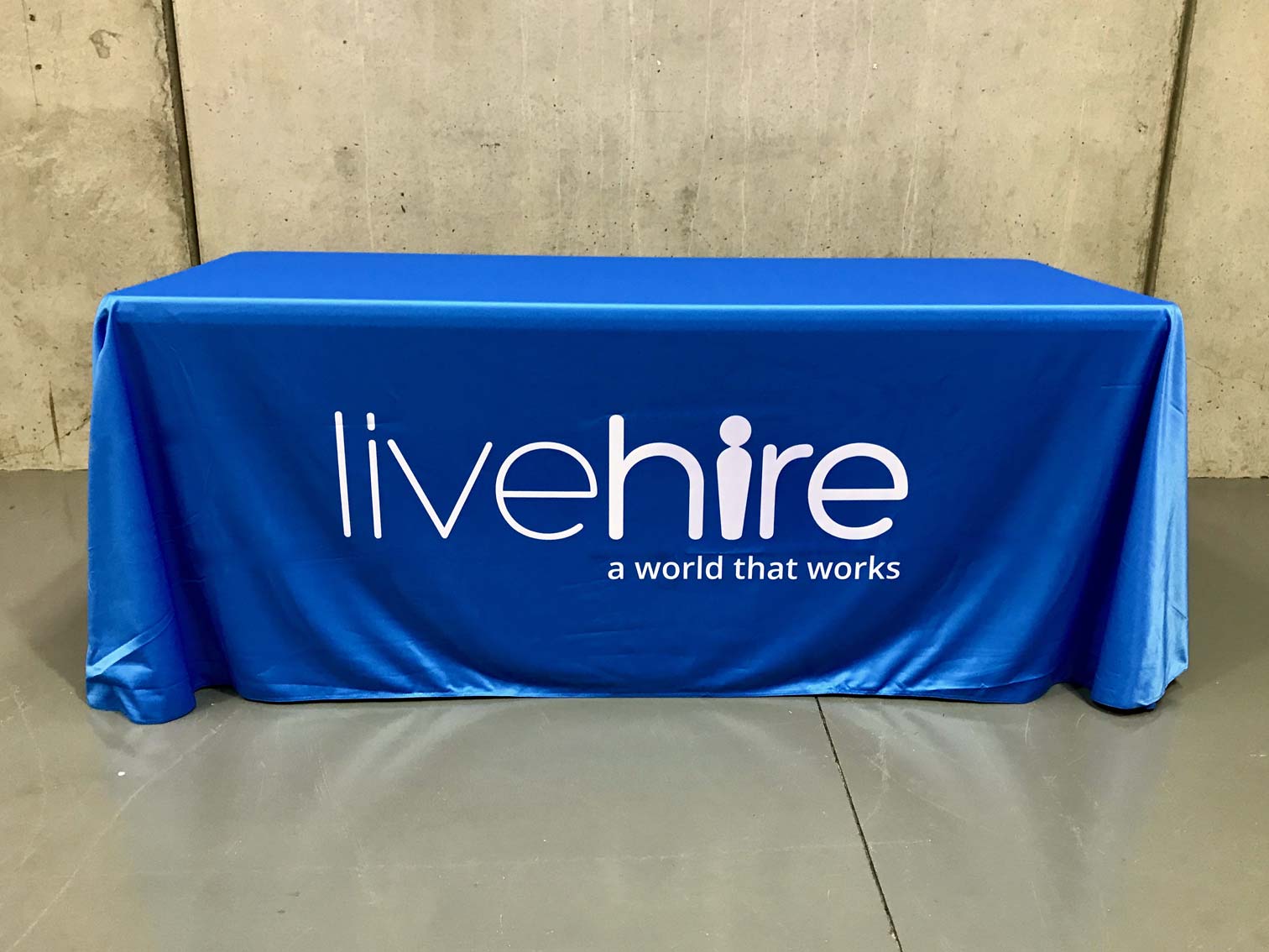Stunning full colour custom printed tablecloths made from premium frame-retardant polyester, that transform standard trestle tables into stunning marketing tools. Our printing is so sharp, we can even print photos on our tablecloths!