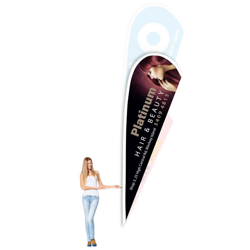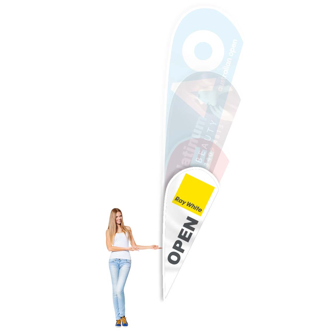 Our Teardrop Banners are printed on super durable 130gsm polyester fabric.