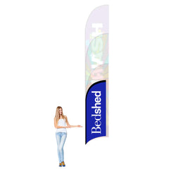 Also known as bow banners or sail flags, feather banners provide a tall, dynamic advertising surface ideal for roadside visibility or event signage. Replace the fabric to keep your message current while utilising your existing ground spike or cross base.
