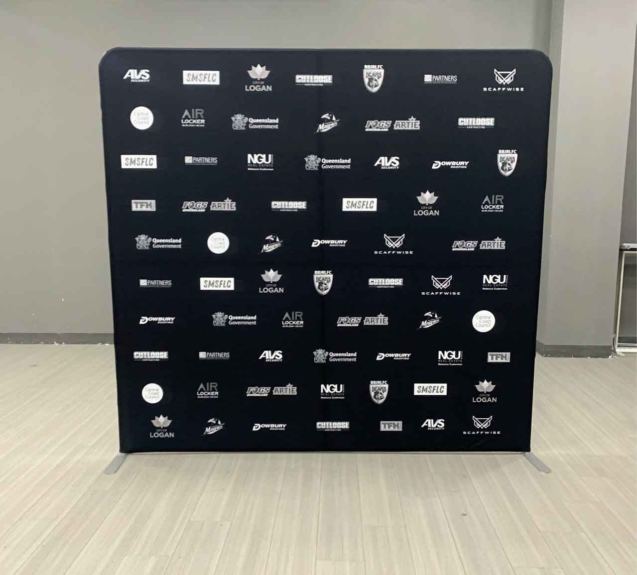 Stretch Fabric Media Walls are professional backdrops ideal for media events, trade shows, or exhibitions. They consist of a full-colour printed stretch polyester fabric banner sewn into a sleeve that slides over a strong anodised aluminium tubular frame (32mm diameter). Available in straight or curved frames, they can be printed single- or double-sided, offering a seamless, high-quality, light-absorbing matte finish perfect for photography.